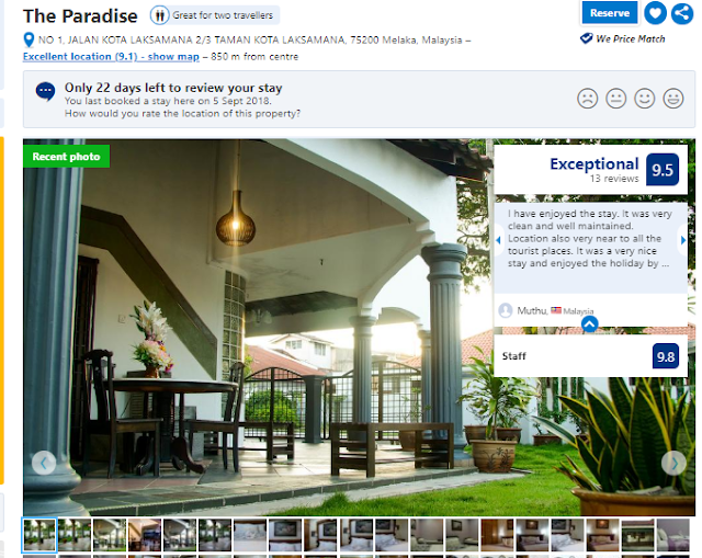 We had booked a homestay place in Malacca, a bit of a risk, but this one turned out to be a jewel. It's called The Paradise on Booking.com, at $35 for two nights. It was a short walk to the Jonker Street heritage area but was in a quiet residential part of town with many restaurants nearby. Our room had a bath and was air-conditioned, one of just three or four bedrooms in the house. We could use the kitchen and relax in the common living area. The manager was friendly and helpful when he was there, but most of the time there was no one there but us.